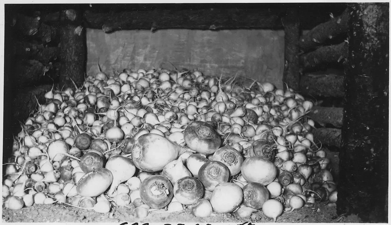 Oct 30th 1940 Wyoming from the Civilian Conservation Crops Division. Unknown Author. Vegetables stored in a root cellar.