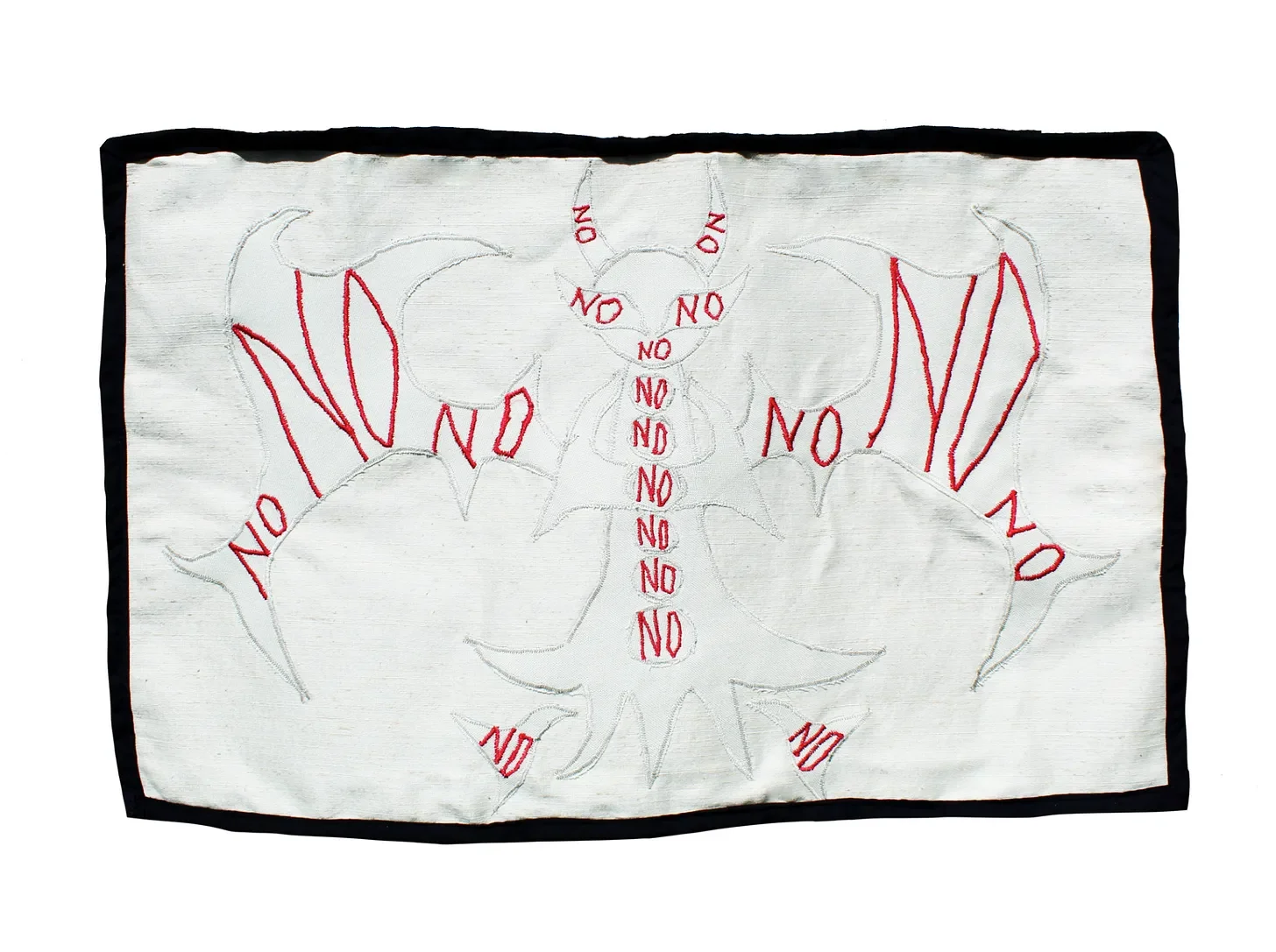 This is a piece I made when I was thinking about all the violence that has resulted in the world from people's inability to access and realize the word “no.” Systemic oppression is designed to alienate us from our access to boundaries and choice. Exploitation is the systematic narrowing of a person's options (materially and psychologically.) It is way too common for some of us to find our selves in a position where the option to say no is completely out of reach without terrible consequences. I hope we can fortify the power of refusal so it grows strong among the disenfranchised in order to transform this narrow reality. “no” is an angelic force in this world that must be respected and expanded whenever possible!